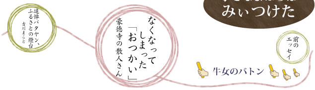 私の場合、女子だったからかもしれないが、やはりワカメタイプでるんるんとお使いに行った。母の真似をしてちょっと大人になった気分だったし、何よりおつりがお駄賃になるというのが魅力的だった。そういう意味では、いかにつり銭をひねり出すかと、頭をつかったものだ。